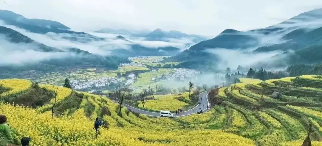 早餐后游玩婺源油菜花基地【江岭】(游览约2.5小时左右)每当春暖花开时,置身于江岭万亩梯田花海中,黄灿灿的 油菜花与远山、近水、粉墙、黛瓦相映成趣,构成一幅天人合一的画卷,在这里您可以尽情的释放,让心灵自由飞翔。这里是婺源田园风光的代表:从江岭开始,公路始终在山间盘旋,从江岭向下看,只见层层梯田,曲折的线条,山谷盆地中的小河,河边聚集的三两个村庄,四周围绕着青山,构成了一幅极美的婺源农村风光画卷。