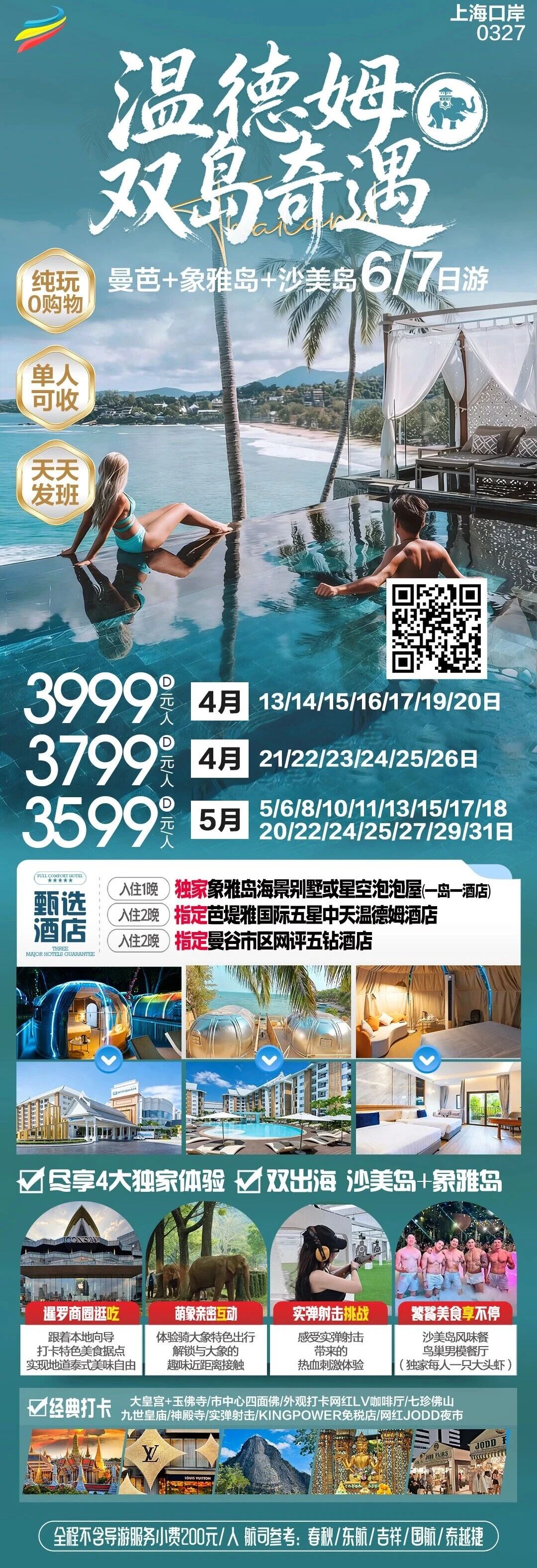 <温德姆-双岛奇遇>曼芭+象牙岛+沙美岛6/7日 象牙岛别墅 纯玩团0购物 - HT