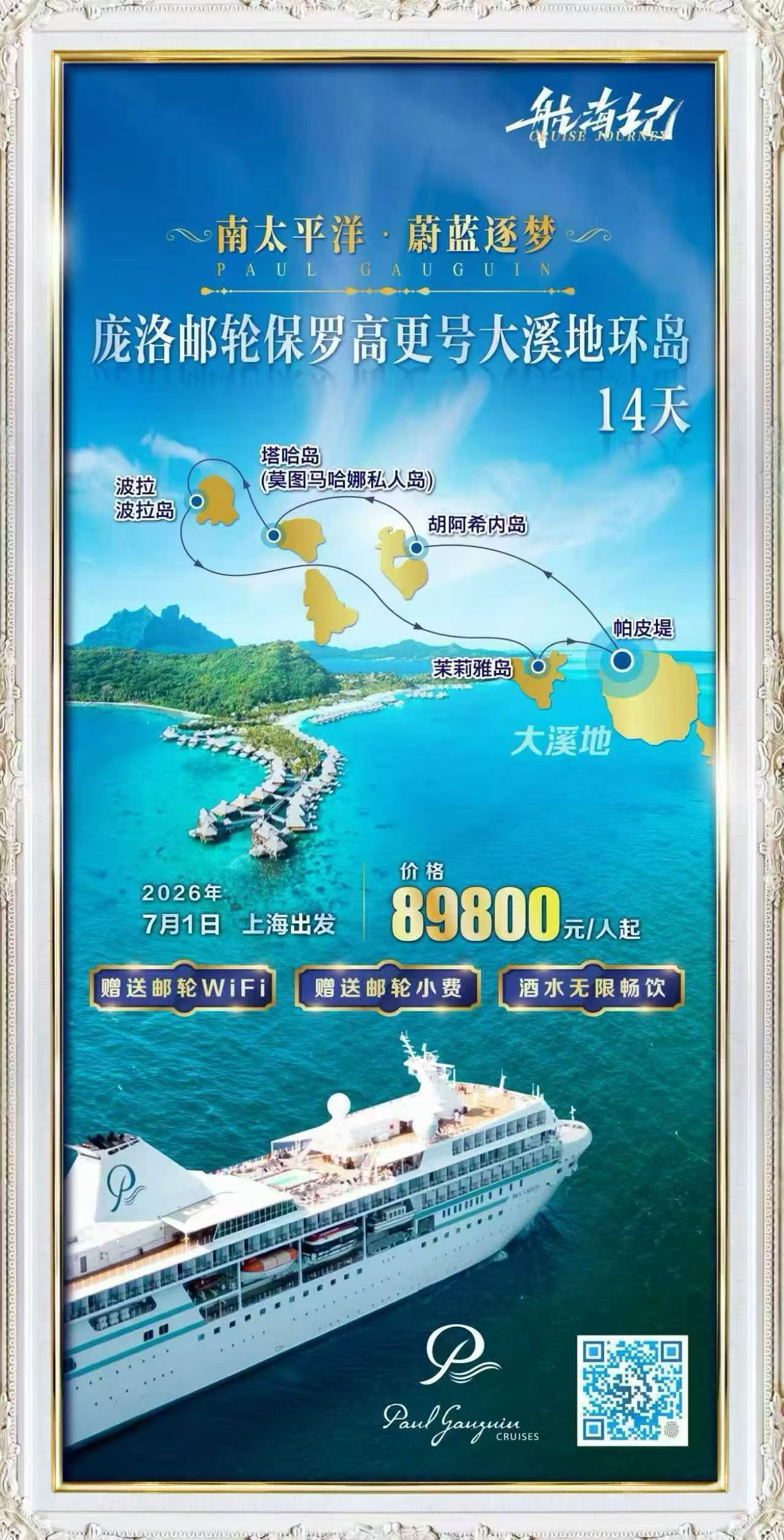 【7月1日-庞洛邮轮保罗高更号】南太平洋蔚蓝逐梦-大溪地环岛 14日 SW