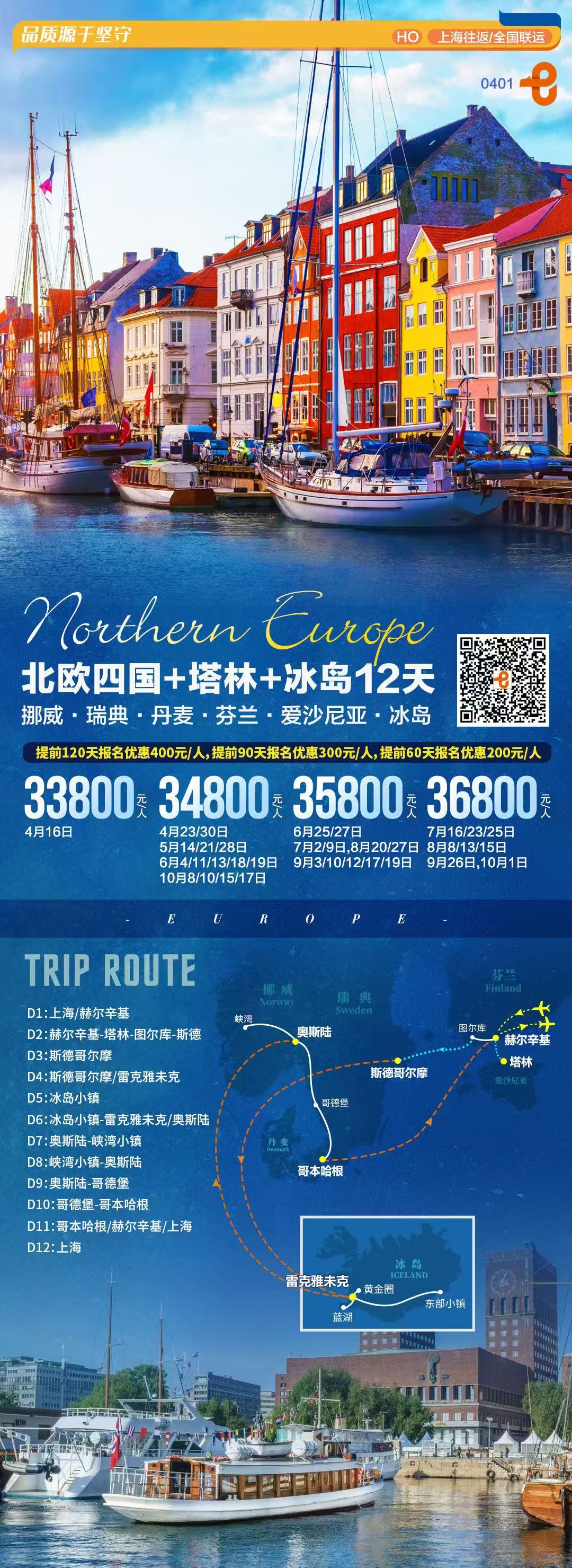 【5-10月】4钻质品-北欧四国+塔林+冰岛 10晚12日-挪威+瑞典+丹麦+芬兰 FJY