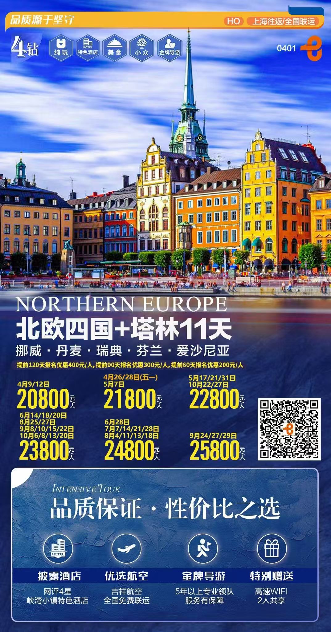 【5-10月】4钻质品-北欧四国+爱沙尼亚 9晚11日-挪威+瑞典+丹麦+芬兰 FJY
