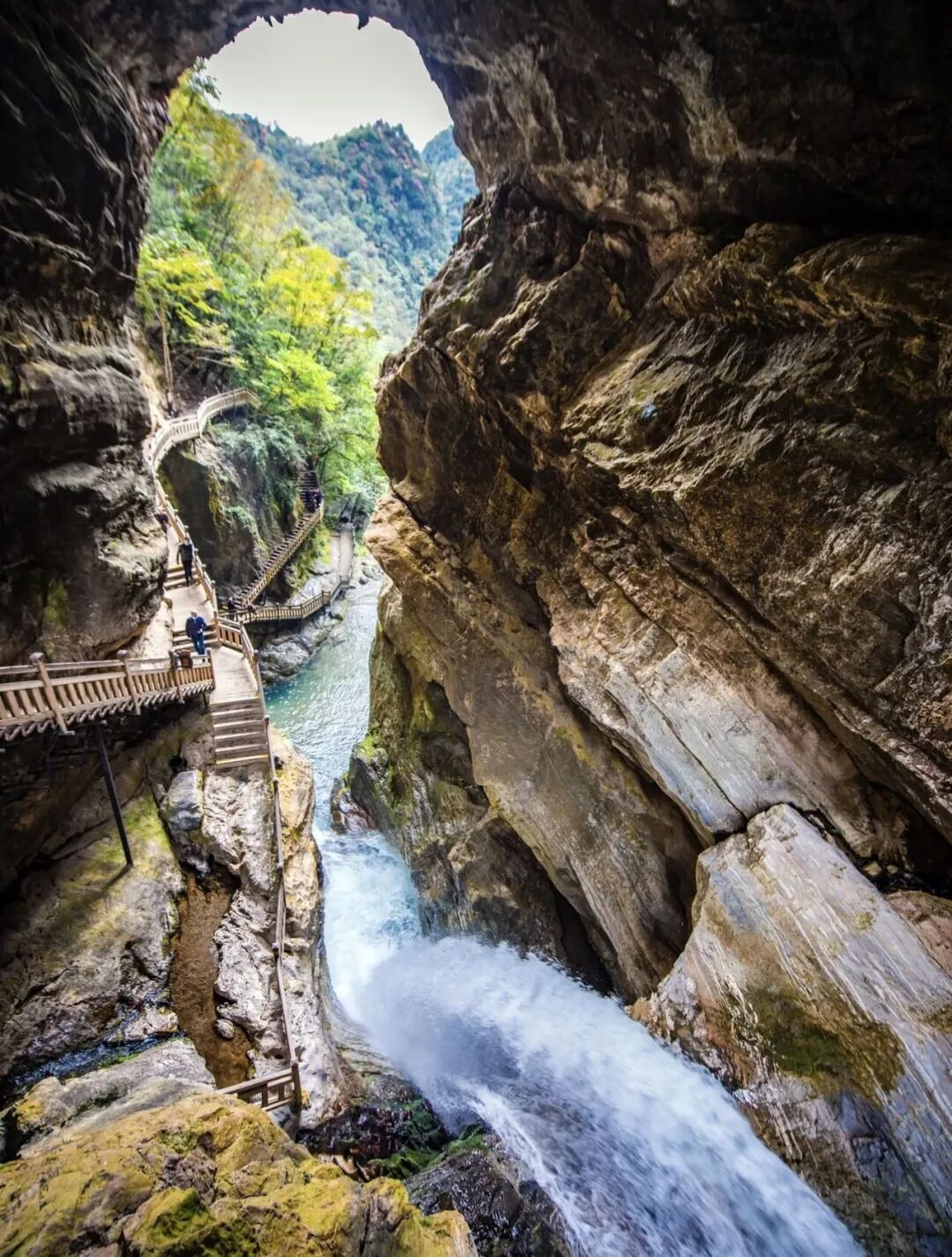 后乘车前往游览【天生桥风景区】(车程约30分钟,游览约1.5小时),天生桥飞瀑自峭壁倾盆而下,似银河泻地,玉珠飞溅,展出万种风情;景区内天生石桥、阴潭、老君听涛、清澈的山涧、巴人的茅屋,欣赏古老的堂戏,品神农云雾茶、喝地道包谷酒,尝神农喜饼、共同构成一幅人与自然和谐世外桃源画卷。