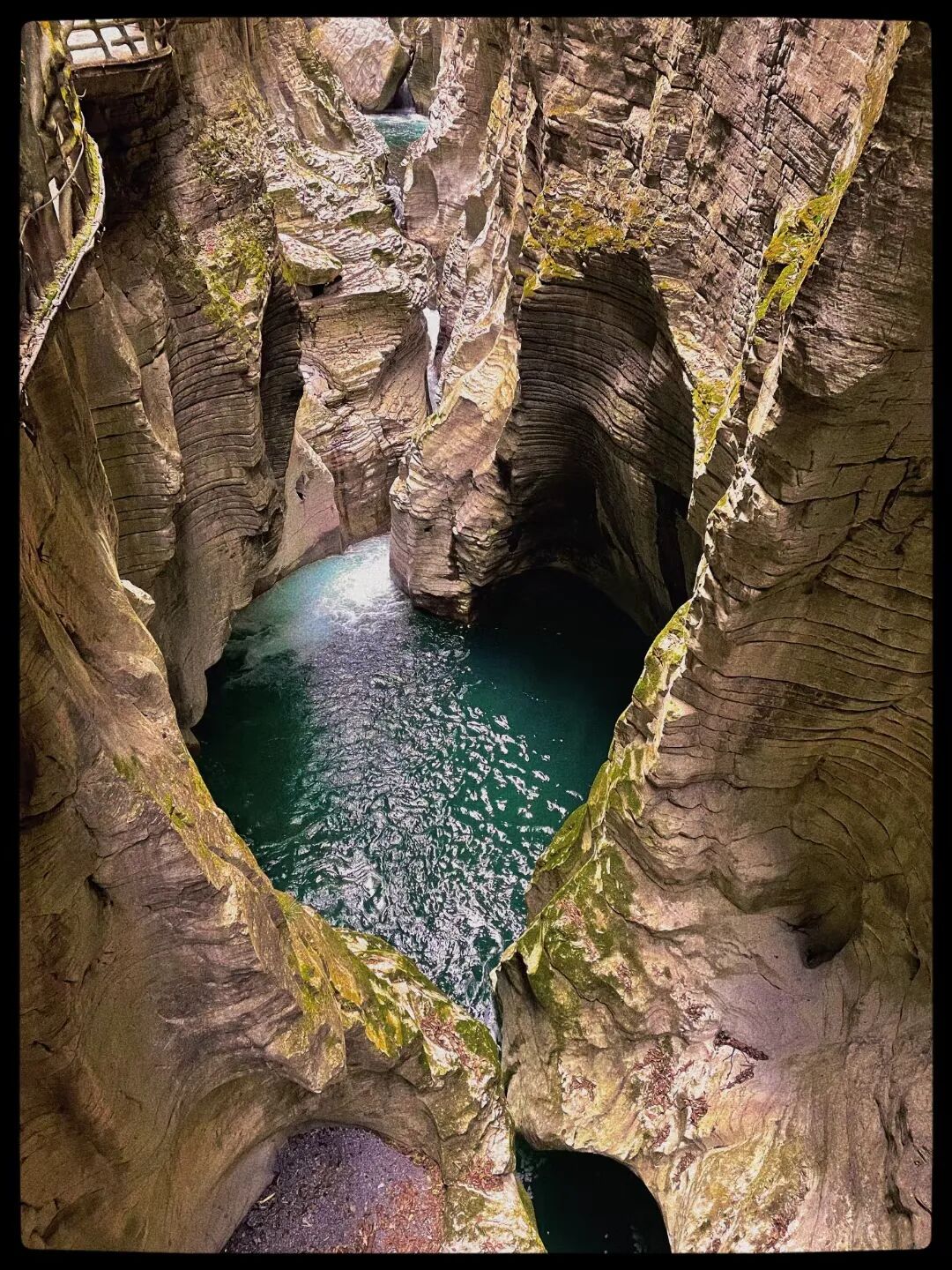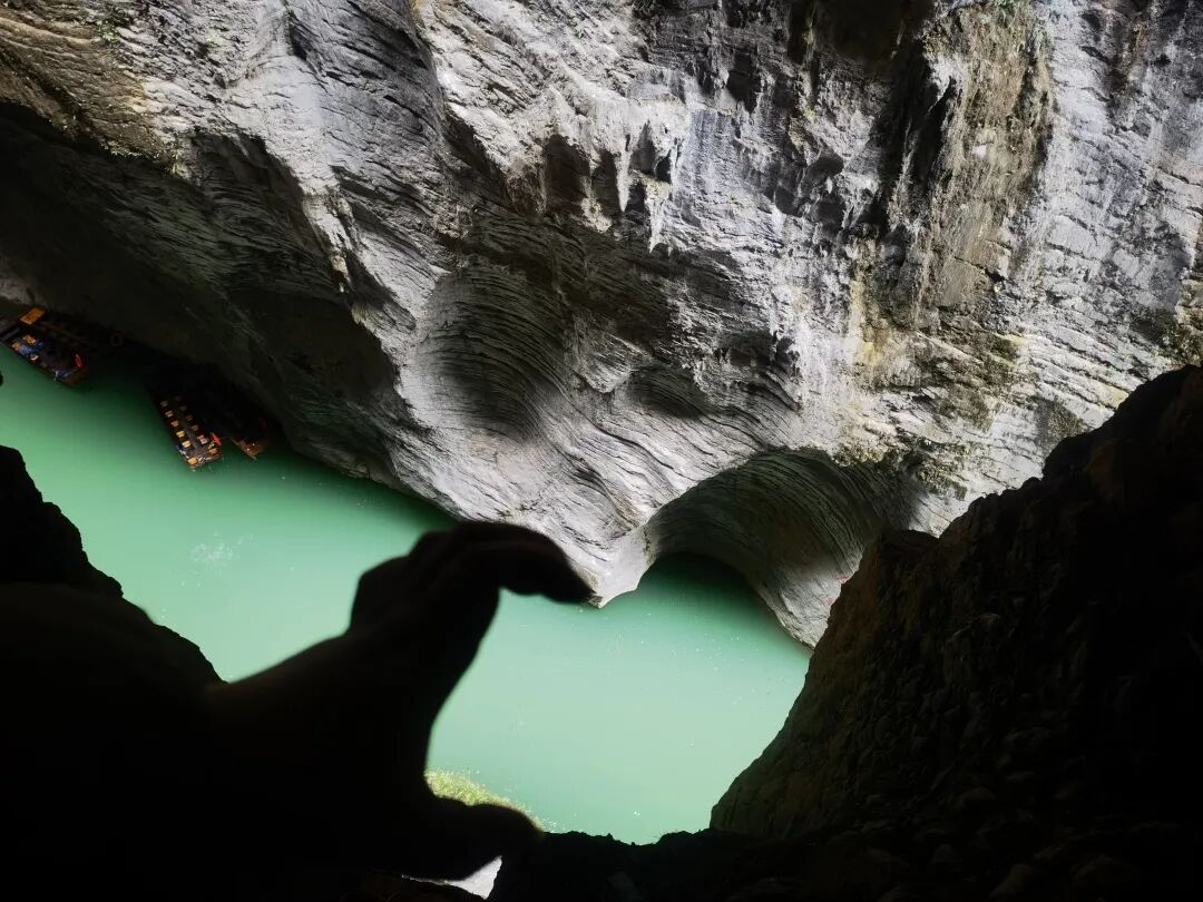 后游览【云龙河地缝】景区(游览约2.5小时)(必须自理景交+缆车50元/人)(自愿自理地缝小蛮腰30元/人)全长约20公里,平均深度为100米,地缝上窄下宽呈“八”字状。地缝两岸绝壁陡峭,相互对峙,雄险无比;瀑布众多,飞溅而下,蔚为壮观;缝底内险滩众多,巨石林立,深潭密布,奇石怪石随处可见;