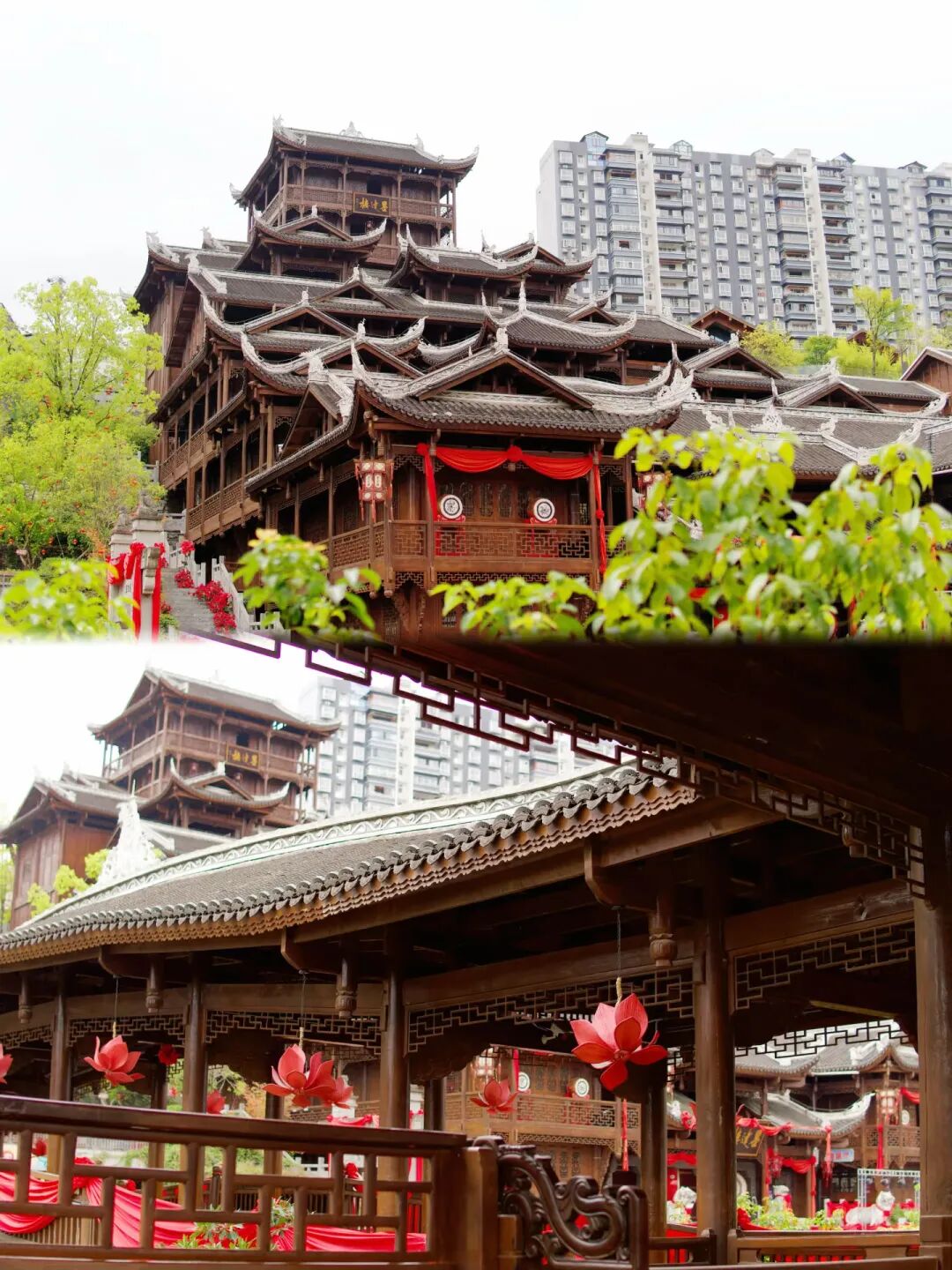 【女儿城】夜幕降临,恩施土家女儿城灯火璀璨,入口处,传来阵阵欢快的锣鼓声一一10多名穿着土家族服饰的阿哥幺妹,在巴人堂门前边跳边唱,“陪十姊妹”“哭嫁”“辞亲”“上轿”等土家婚俗礼仪一一上演,满屏都是浓浓的人间烟火味。一场土家婚嫁戏,让女儿城徜徉在欢乐的海洋里!