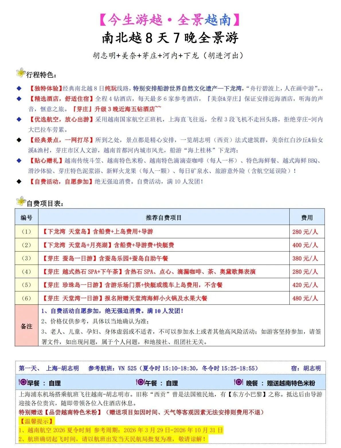 <今生游越--胡进>胡志明、美奈、芽庄、下龙、河内8日 三飞 0购物纯玩团 -HY