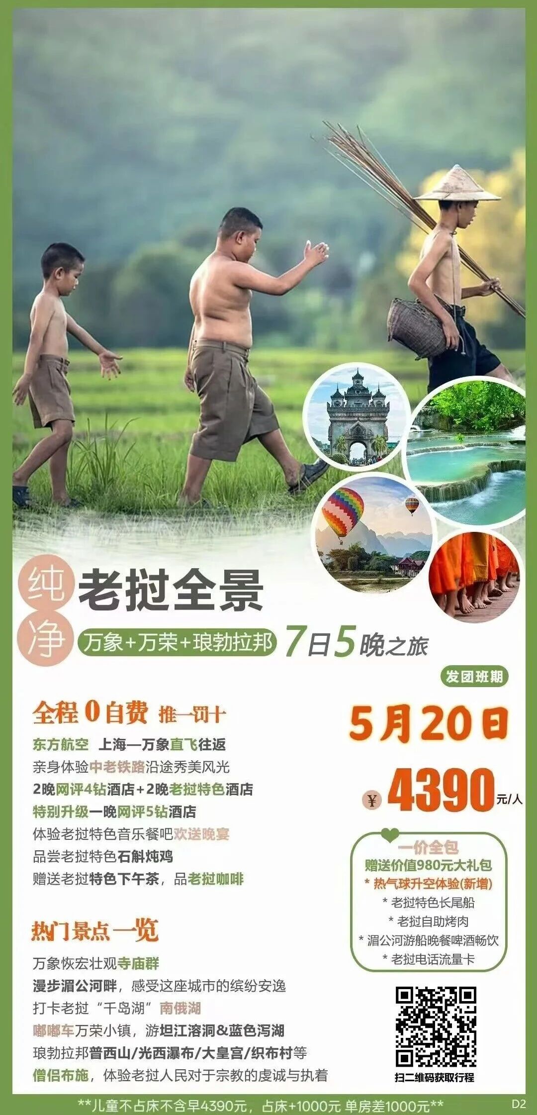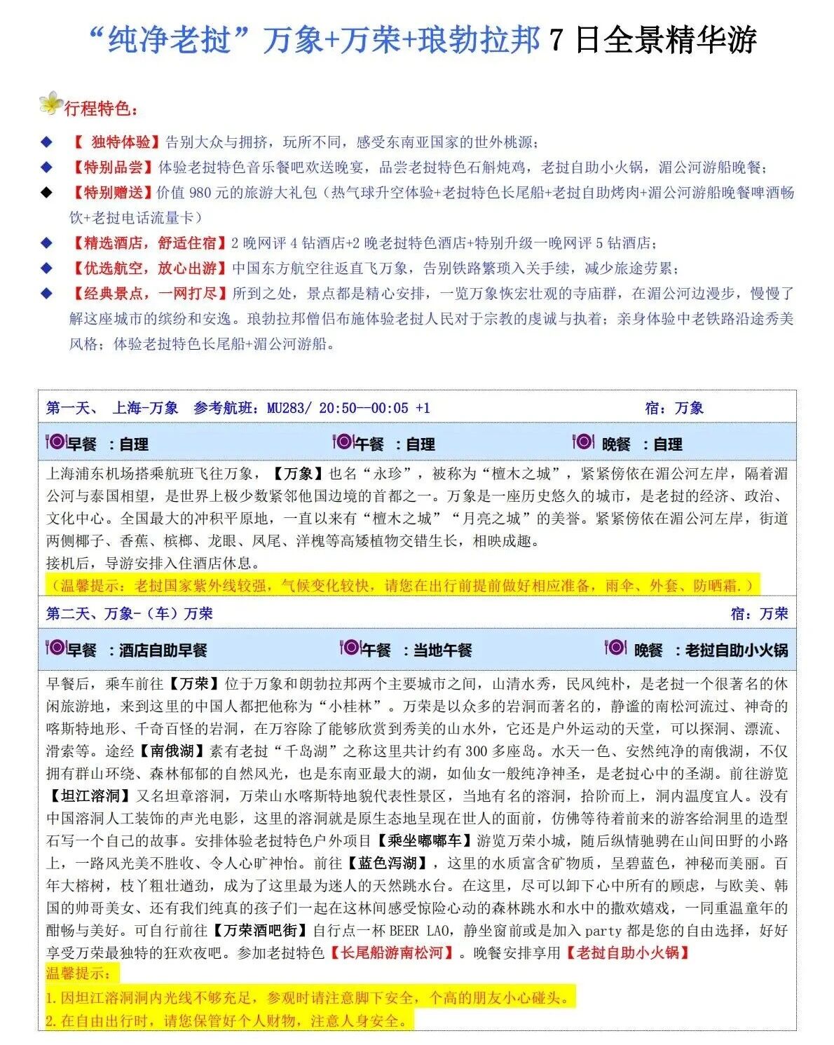 <纯净老挝>万荣、万象、琅勃拉邦7日 东航直飞 全程0自费 - HY